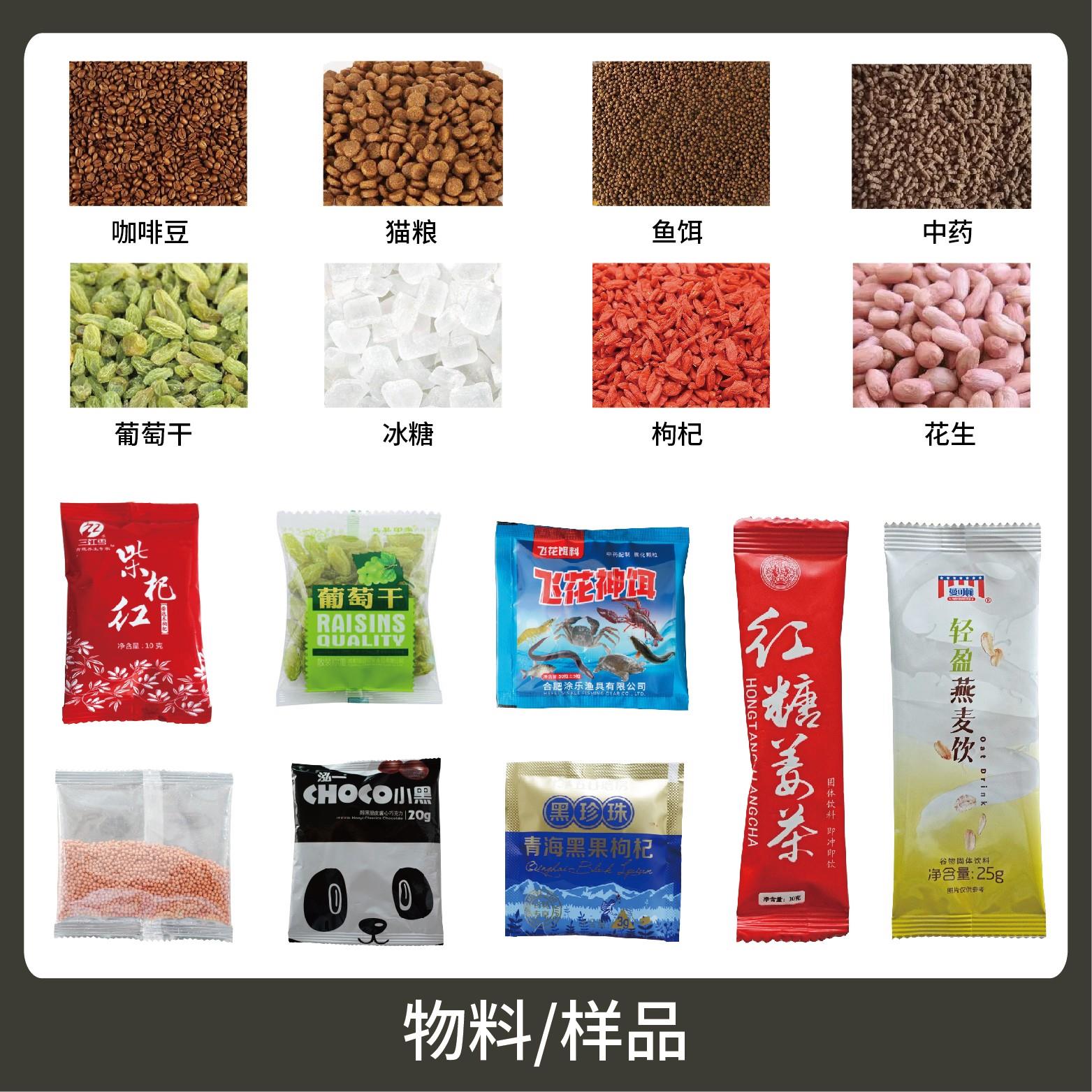 1、適用于食品、醫藥、化工、化妝品行業中顆粒物品的計量包裝,如:種子、枸杞、中藥顆粒等。